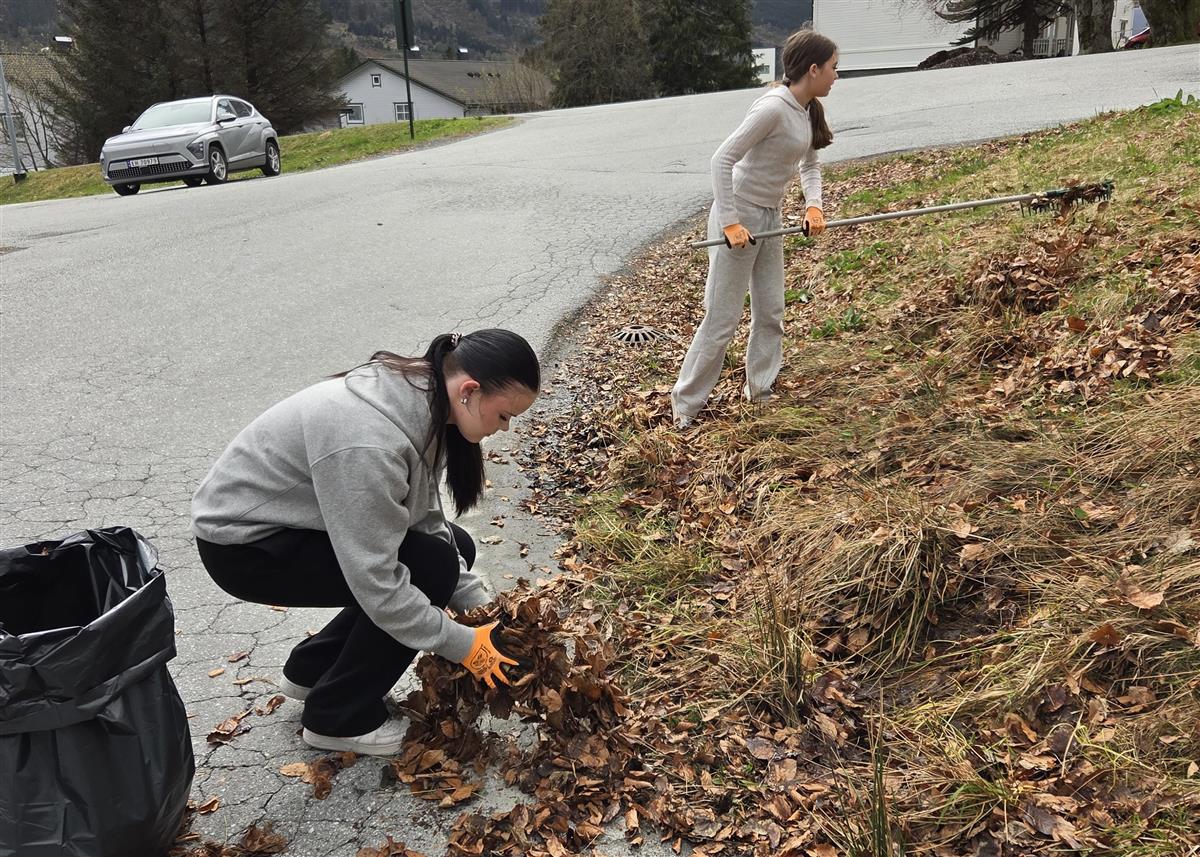 Med godt humør og stor arbeidsvilje raka dei lauv, grov fram attgrodde bed, fjerna gamle greiner og bidrog til å gjere uteområdet triveleg og innbydande.