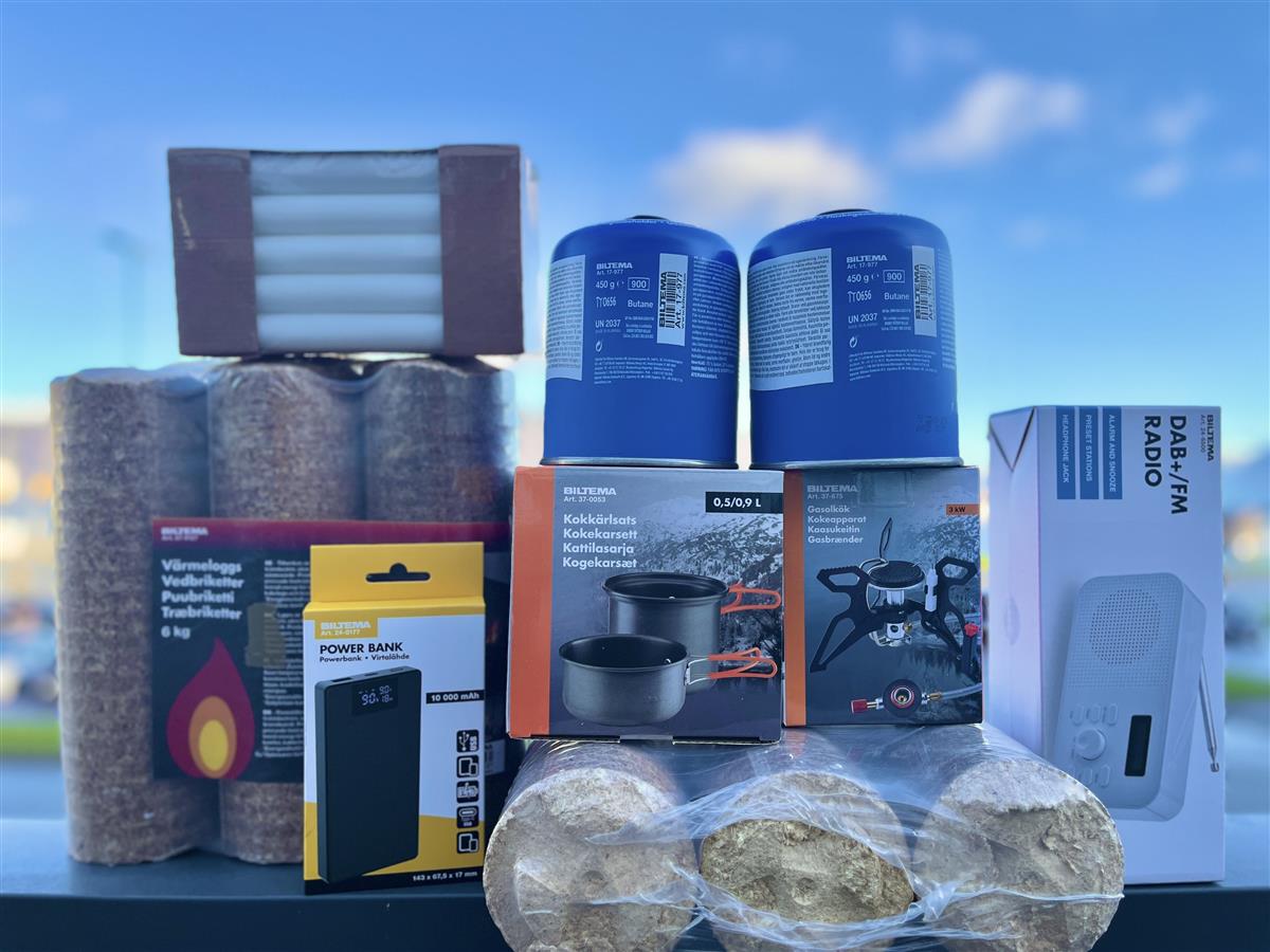For å klare deg utan straum lenge, bør du ha alternativ oppvarming til straum (td vedbrikettar), noko å lage mat på (gasskjøken, gass og kokekar), DAB-radio på batteri, straumbank og stearinlys. Ustyret er sponsa av Biltema Ulsteinvik