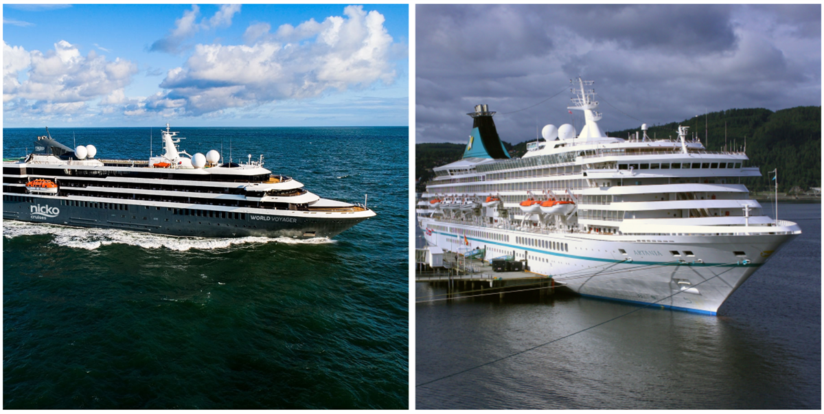 World Voyager (T.v.) og MS Artania kjem til Hareid neste sommar