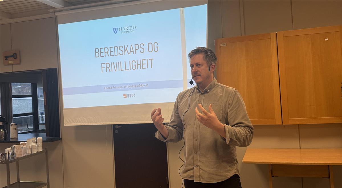 – Frivillige og lokalsamfunnet er ein svært viktig del av beredskapen. På ein mindre stad som Hareid, som også har sterk frivilligheit, er det heilt essensielt å få dei frivillige med på laget, seier Friestad.