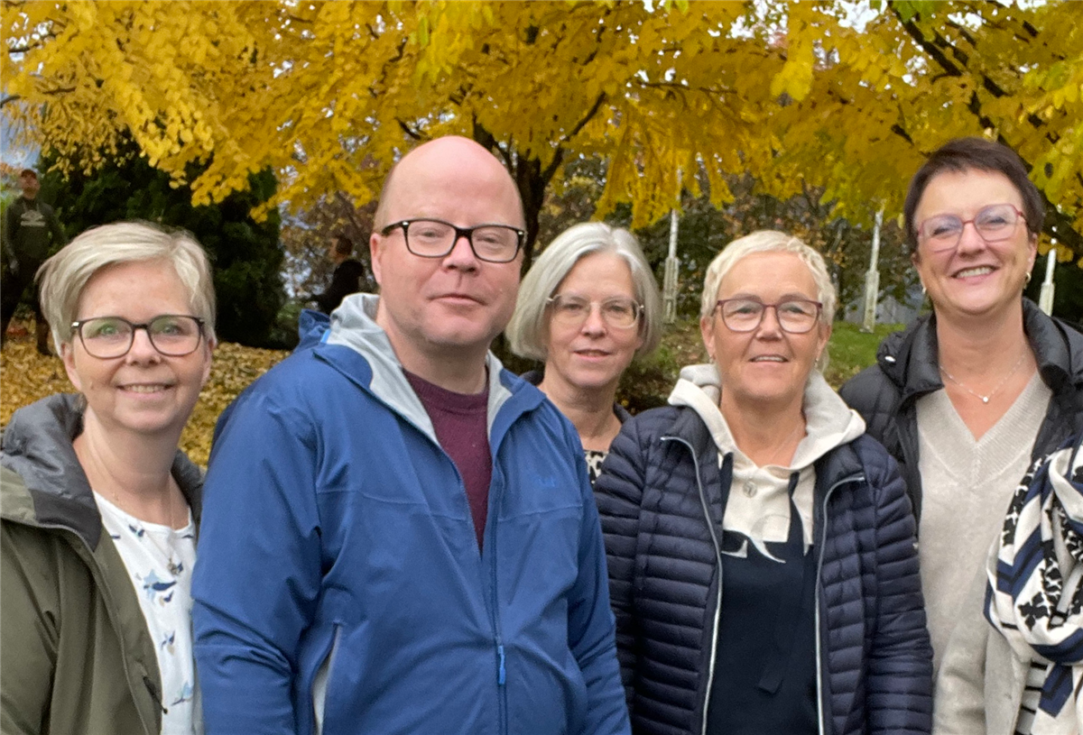 F.v.: Tove - Sande kommune, Johnny - Hareid kommune, May Britt - Ørsta kommune, Helga - Ulstein kommune og Inger-Johanne Johnsen - Volda kommune. Representanten frå Herøy var ikkje tilstade då bilde vart tatt.