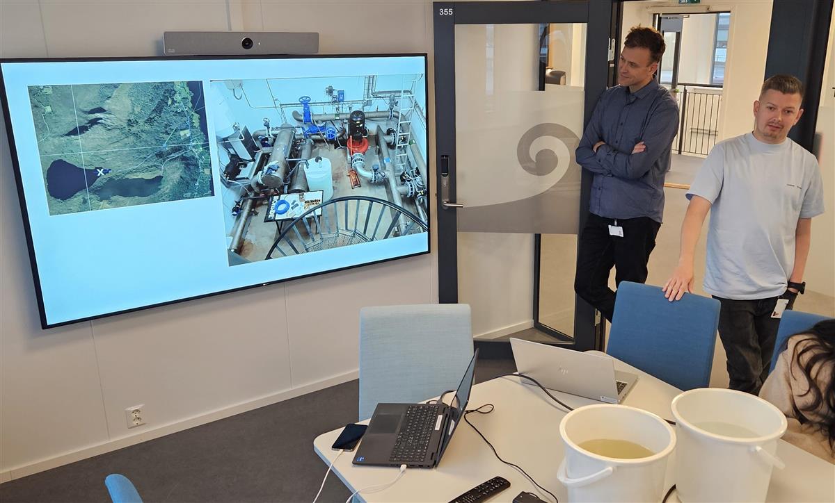 Hos kommunalteknikk fekk ungdomsskuleelevane sjå korleis urensa og rensa vatn såg ut. Dei fekk også ph-testa både dette vatnet og energidrikk.
