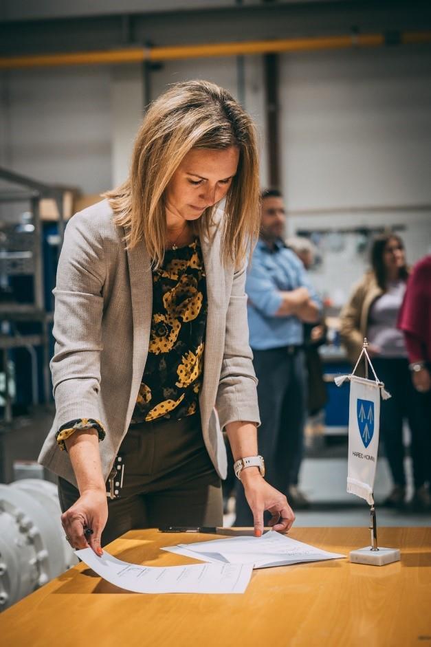 Prosjektleiar, Julie Sundgot Andersen, under signering av samarbeidsavtale læring – næring.