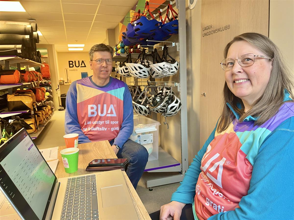Geir Slotsvik og Irene Lovise Johansen er to av frivillige som gjer det mogleg å drive BUA på Hareid.