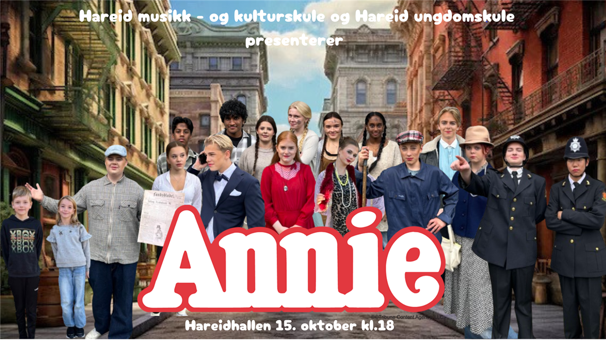 I år er det musikalen Annie som har premiere i Hareidhallen onsdag 15. oktober klokka 18.00.